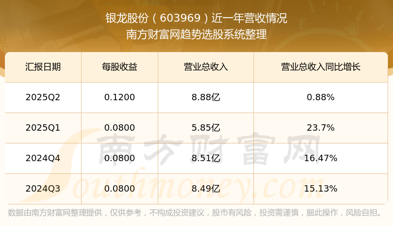 在2025年第二季度,銀龍股份的業(yè)績(jī)表現(xiàn),主營(yíng)業(yè)務(wù)收入達(dá)到8.88億元,實(shí)現(xiàn)了0.88%的同比增長(zhǎng)率。同時(shí),公司歸母凈利潤(rùn)錄得1.02億元,同比增長(zhǎng)67.12%。
