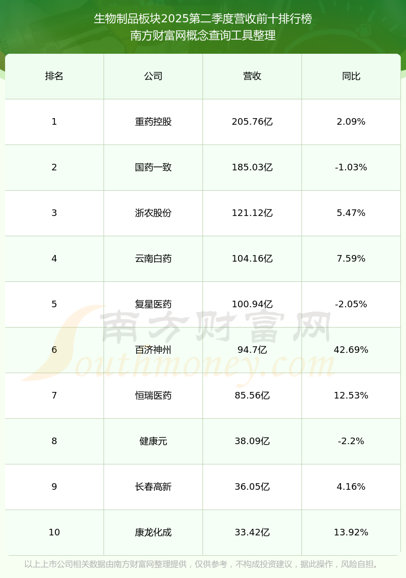 按照南方財(cái)富網(wǎng)概念查詢工具統(tǒng)計(jì),該股所屬板塊為生物制品板塊,該板塊共有148只股票,首藥控股2025第二季度營收在該板塊中排名為第147名,該板塊2025第二季度營收排名前十的股票如下表: