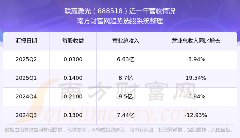 一、聯(lián)贏激光(688518)股票業(yè)績情況