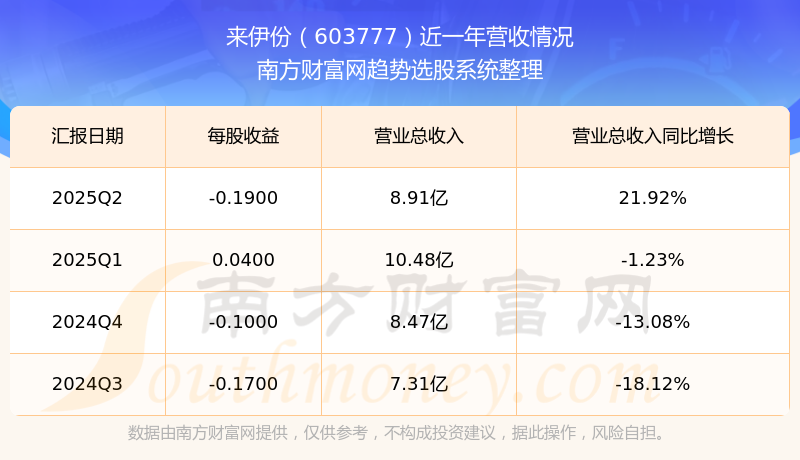 于2025年第二季度,來伊份披露了其業(yè)績表現(xiàn),其中主營業(yè)務(wù)收入8.91億元,相較于去年同期21.92%。此外,公司歸屬于母公司的凈利潤為-6311.96萬元,同比增長了-36.07%。在扣除所有非經(jīng)常性損益后,凈利潤-6195.91萬元,同比增長-10.5%。