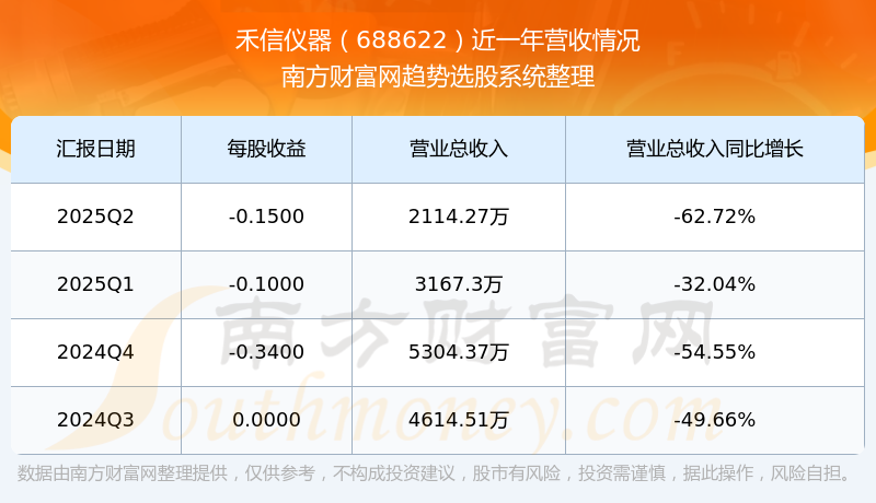 2025年第二季度,禾信儀器營收同比-62.72%,凈利潤同比-47.55%。