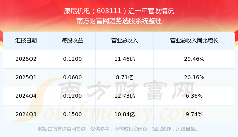 2025年第二季度,康尼機電營收同比29.46%,凈利潤同比60.64%。