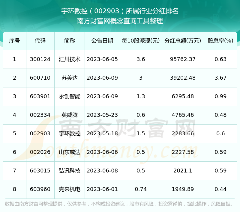 二、宇環(huán)數(shù)控002903行業(yè)分紅排名