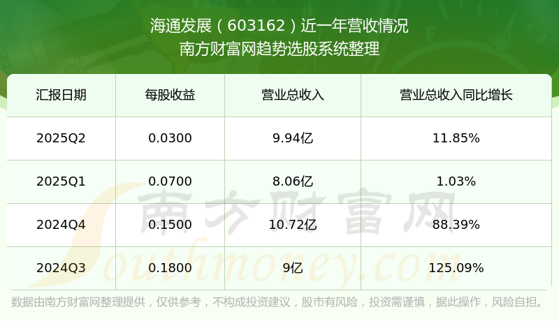 一、海通發(fā)展(603162)股票營(yíng)收情況