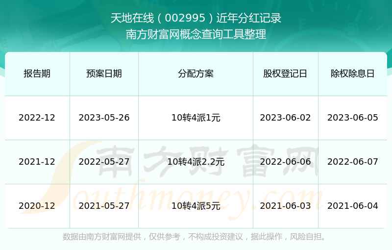 天地在線最新一次公布的分紅方案為10轉(zhuǎn)4派1元。本次權(quán)益分派股權(quán)登記日為2023年6月2日,除權(quán)除息日為2023年6月5日,派息日為2023年6月5日。