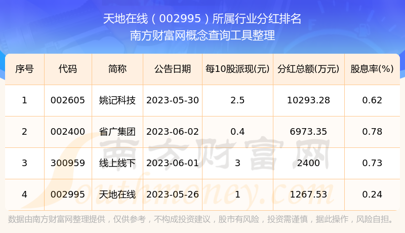 按照南方財(cái)富網(wǎng)趨勢(shì)選股系統(tǒng)統(tǒng)計(jì),天地在線所屬行業(yè)為數(shù)字營銷行業(yè),數(shù)字營銷行業(yè)分紅排名情況如下表: