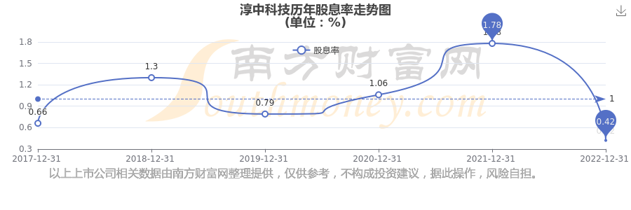 近年淳中科技年度股息率走勢(shì)如下圖: