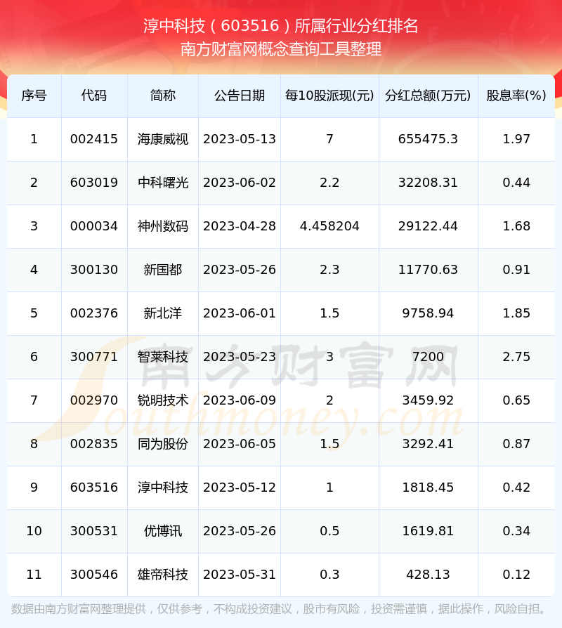 按照南方財(cái)富網(wǎng)趨勢(shì)選股系統(tǒng)統(tǒng)計(jì),淳中科技所屬行業(yè)為計(jì)算機(jī)設(shè)備行業(yè),計(jì)算機(jī)設(shè)備行業(yè)分紅排名情況如下表:
