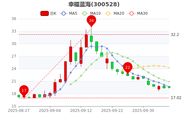 10月15日早盤消息,幸福藍海最新報19.440元,漲0.46%。成交量281.21萬手,總市值為72.44億元。
