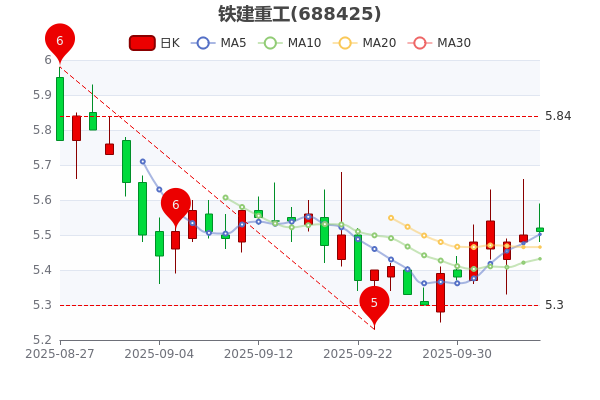 10月15日鐵建重工早盤消息,7日內(nèi)股價上漲3.64%,今年來漲幅上漲20%,最新報5.520元,漲0.18%,市值為294.41億元。