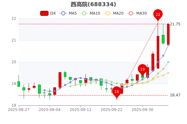 10月14日收盤消息,西高院最新報(bào)價21.750元,跌1.56%,3日內(nèi)股價上漲2.57%;今年來漲幅上漲24.92%,市盈率為30.11。