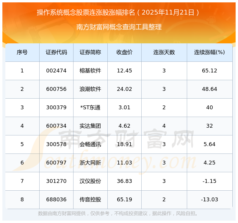 2025年11月21日操作系統(tǒng)概念股票連漲股漲幅排名