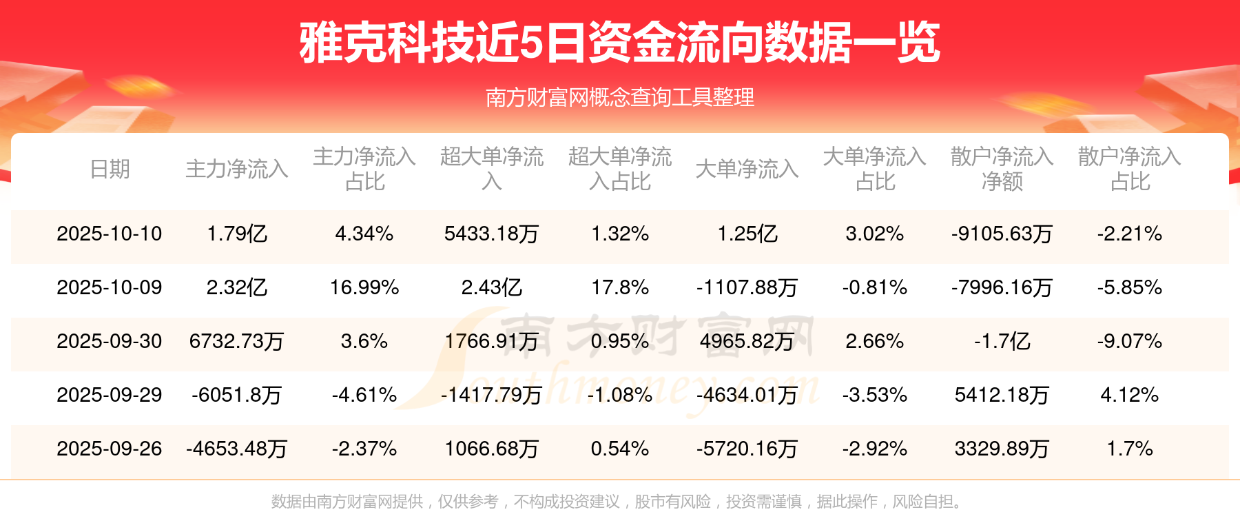 10月10日消息,雅克科技主力資金凈流入1.79億元,超大單資金凈流入5433.18萬元,散戶資金凈流出9105.63萬元。