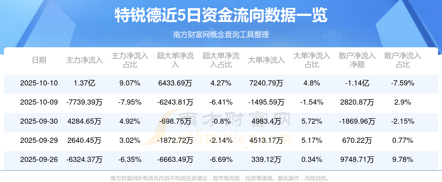 10月10日該股主力凈流入1.37億元,超大單凈流入6433.69萬元,大單凈流入7240.79萬元,中單凈流出2234.57萬元,散戶凈流出1.14億元。