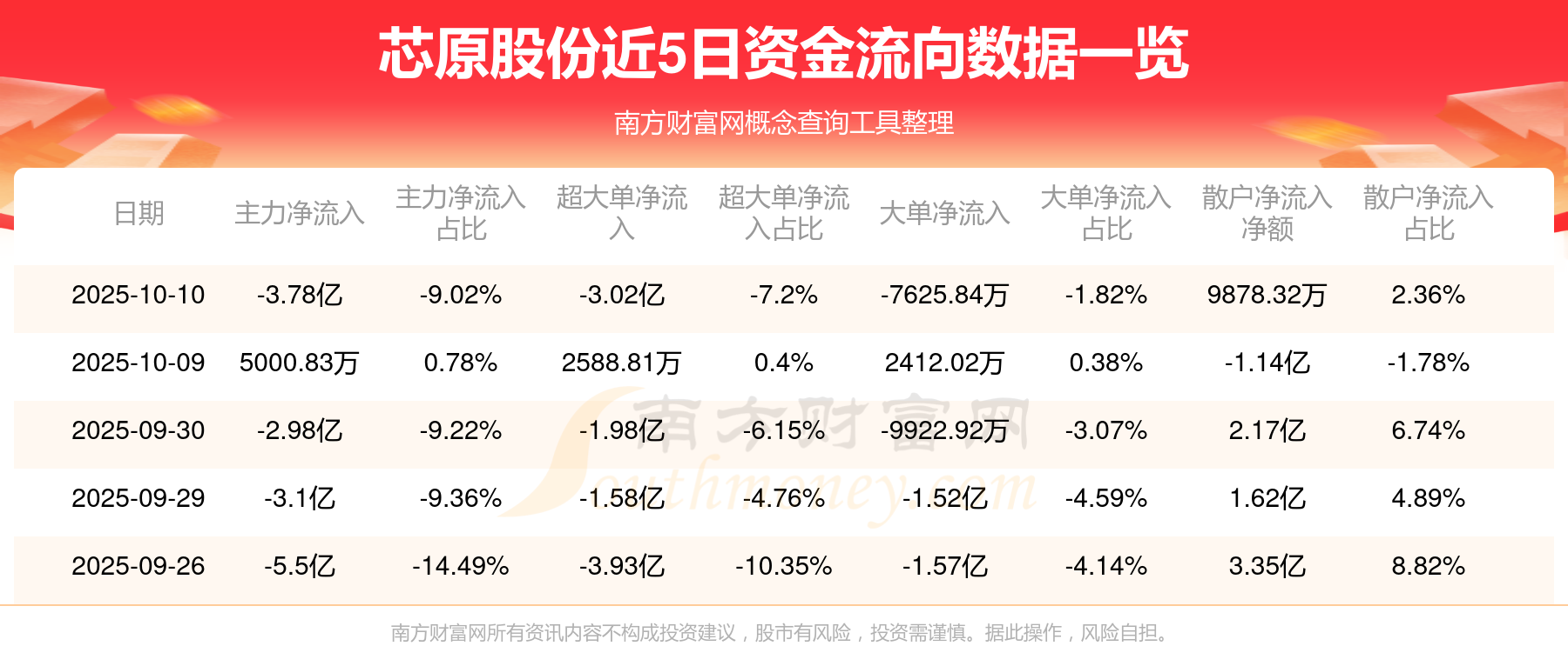 近5日資金流向一覽見下表: