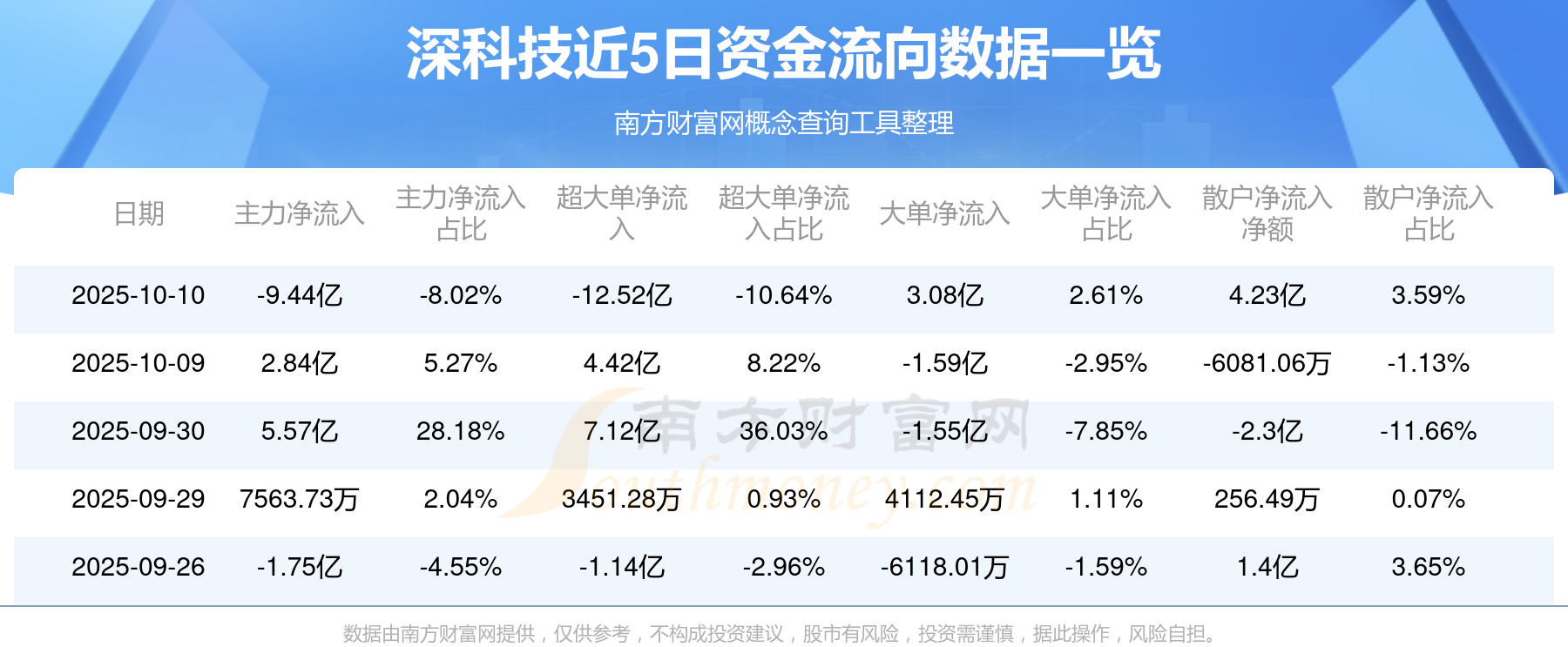 10月10日消息,深科技主力凈流出9.44億元,超大單凈流出12.52億元,散戶凈流入4.23億元。