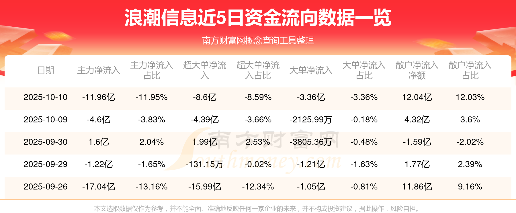 10月10日消息,浪潮信息資金凈流出11.96億元,超大單資金凈流出8.6億元,換手率9.54%,成交金額100.12億元。