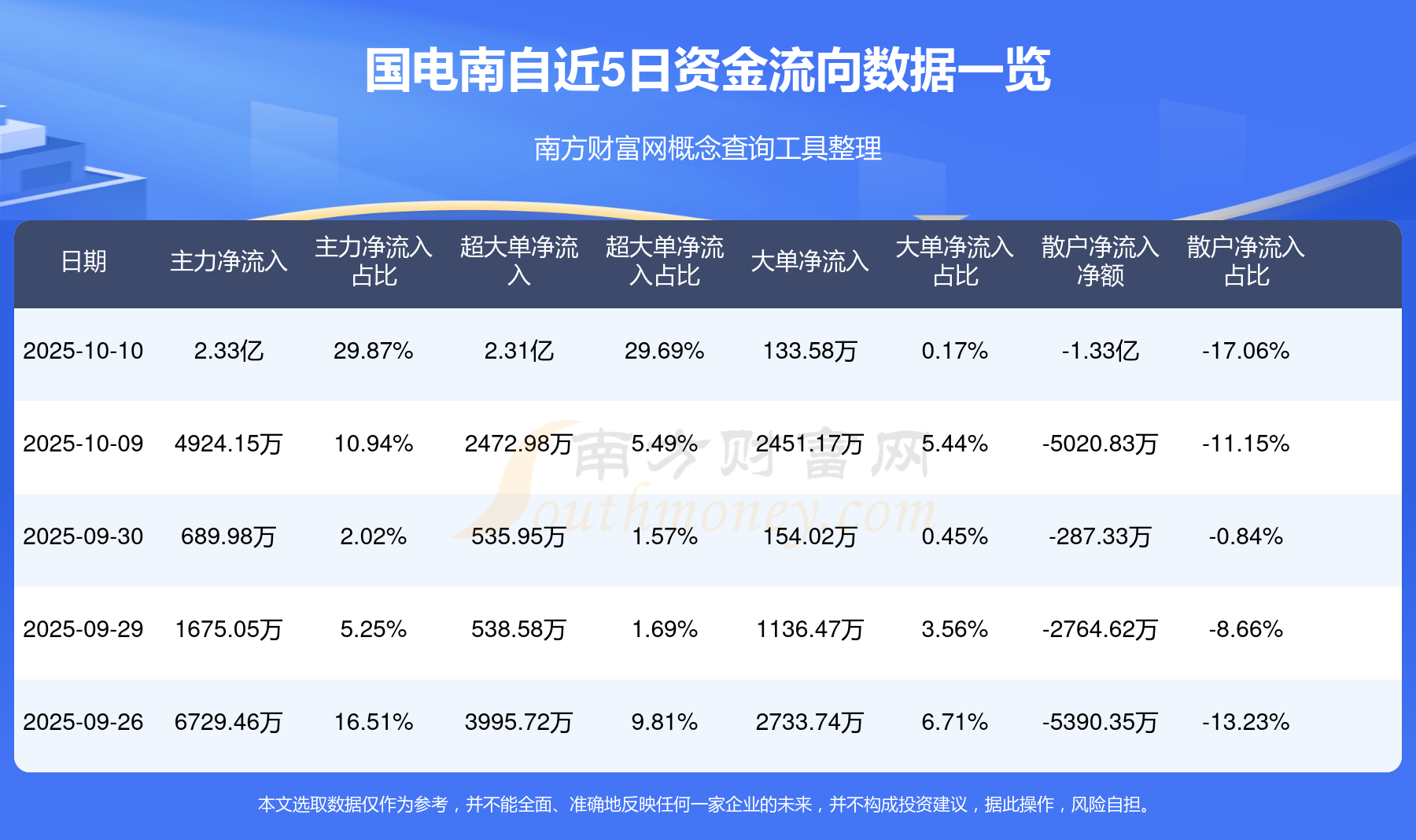 10月10日消息,國電南自10月10日主力資金凈流入2.33億元,超大單資金凈流入2.31億元,大單資金凈流入133.58萬元,散戶資金凈流出1.33億元。