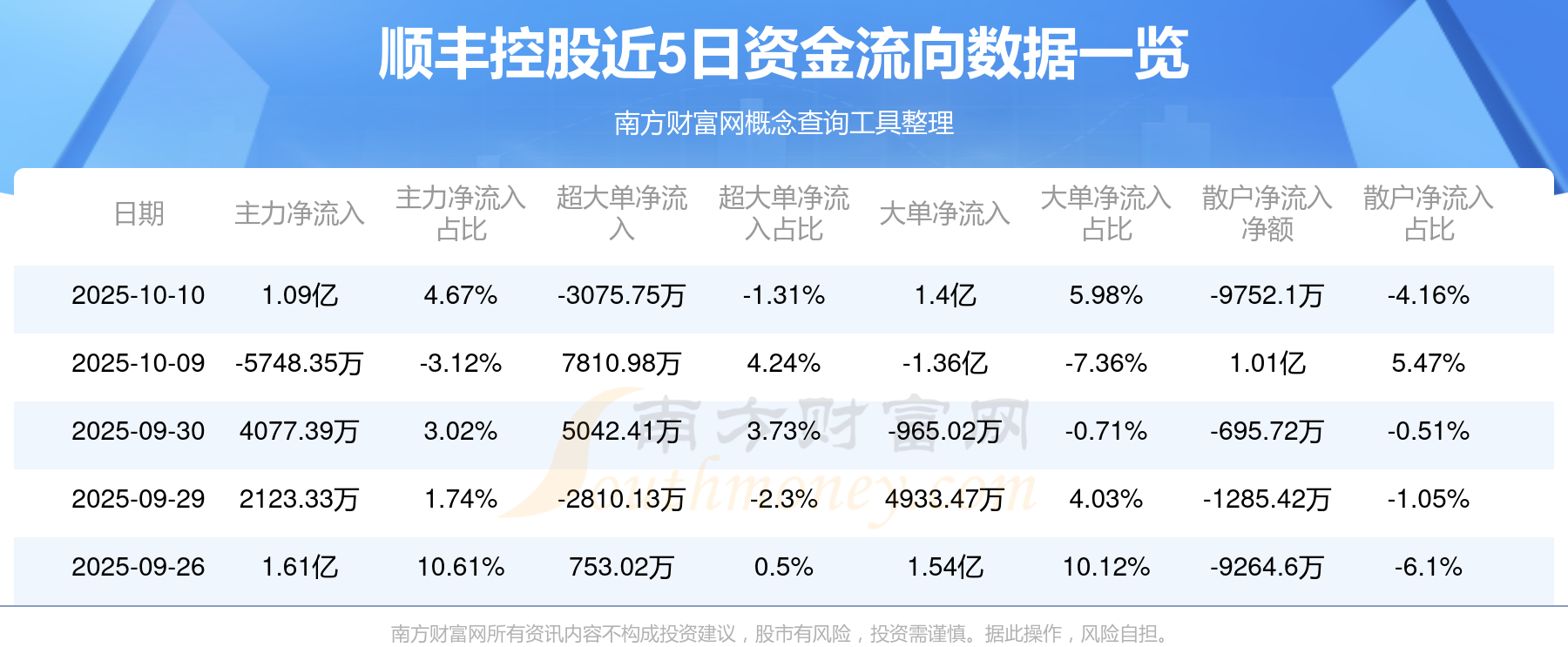 截止10月10日15點收盤,順豐控股(002352)漲1.78%,股價為41.170元,盤中股價最高觸及41.4元,最低達40.35元,總市值2074.73億元。