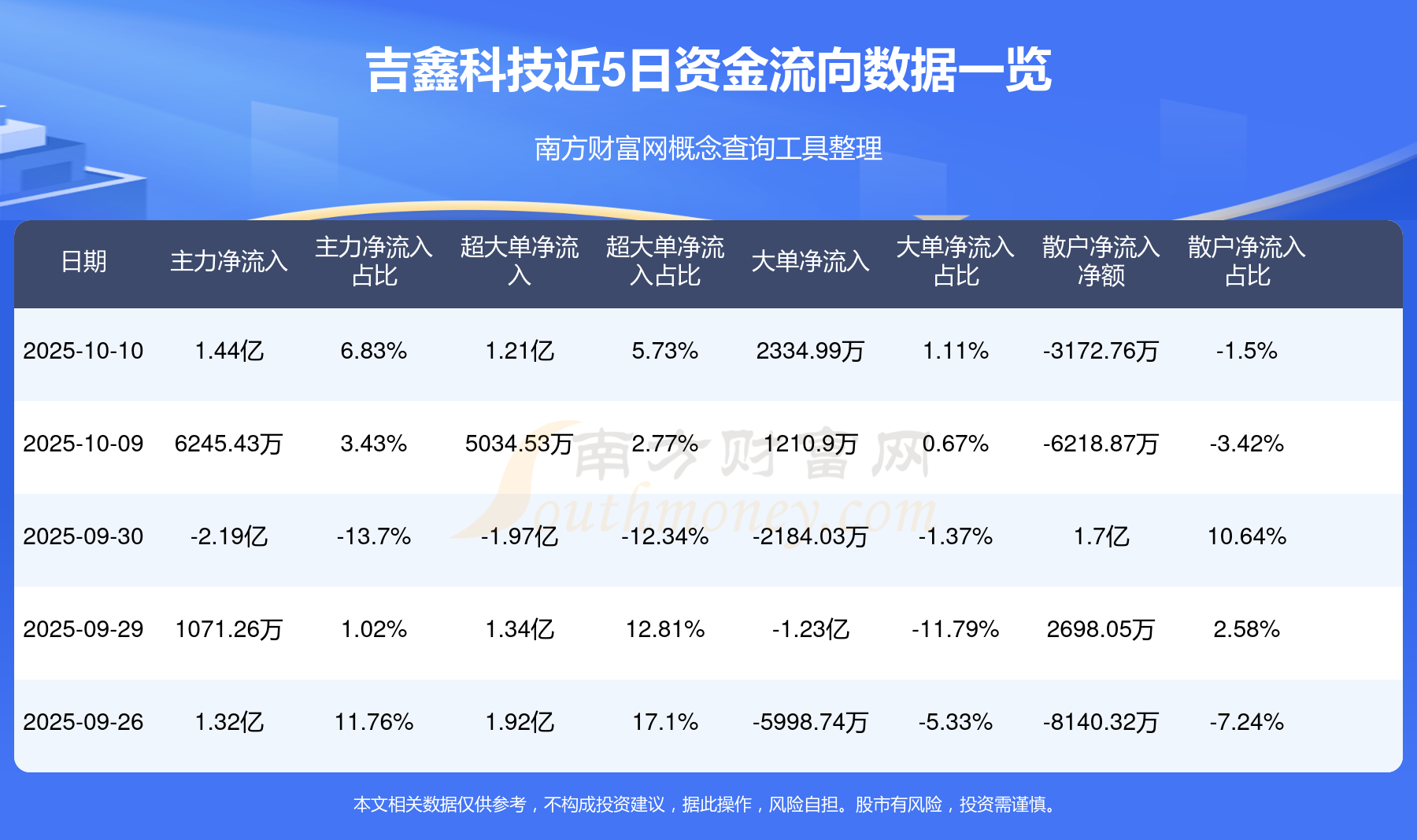 10月10日開盤最新消息,吉鑫科技7日內(nèi)股價上漲26.99%,截至下午3點收盤,該股漲5.6%報6.410元 。