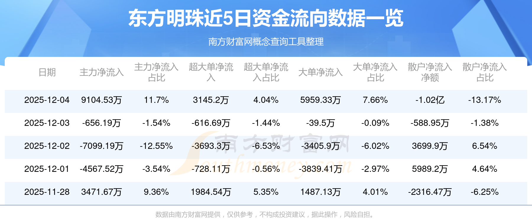 資金流向數(shù)據(jù)方面,12月4日主力資金凈流流入9104.53萬元,超大單資金凈流入3145.2萬元,大單資金凈流入5959.33萬元,散戶資金凈流出1.02億元。