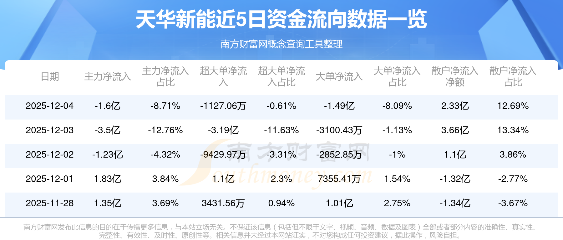 12月4日消息,天華新能12月4日主力凈流出1.6億元,超大單凈流出1127.06萬(wàn)元,大單凈流出1.49億元,散戶(hù)凈流入2.33億元。