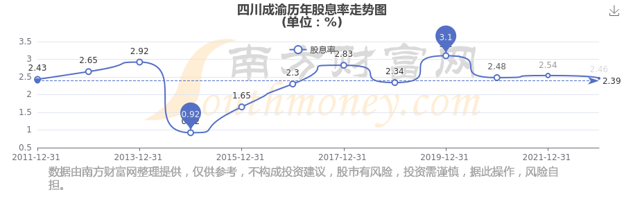 近年四川成渝年度股息率走勢(shì)如下圖: