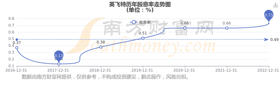 近年英飛特年度股息率走勢如下圖:
