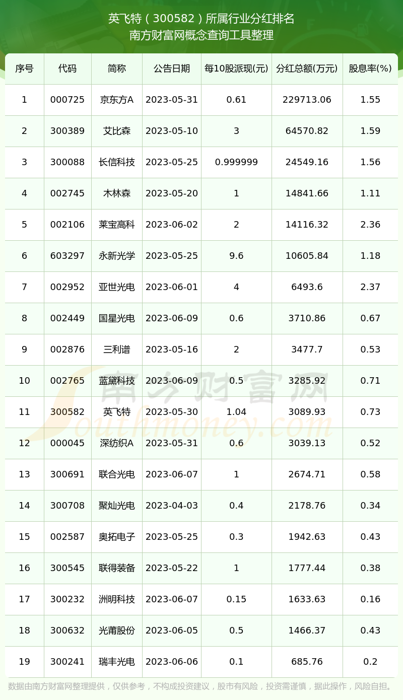 二、英飛特300582行業(yè)分紅排名