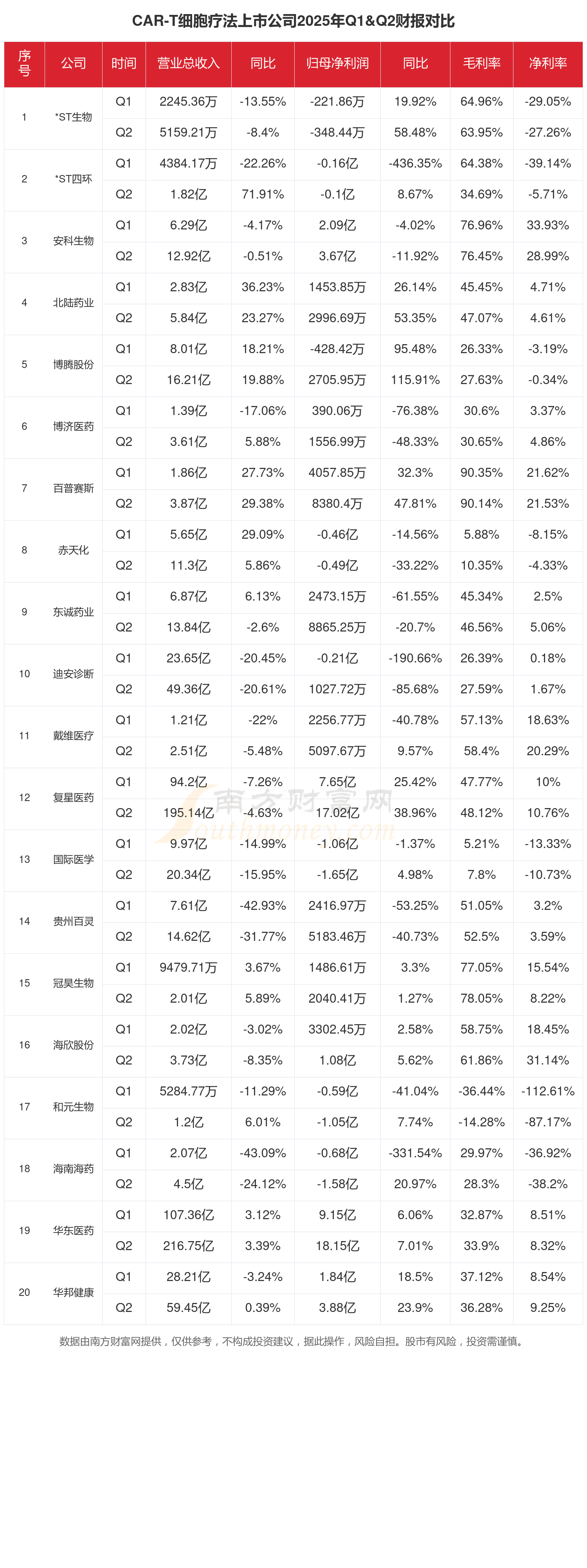 根據(jù)南方財(cái)富網(wǎng)概念查詢(xún)工具數(shù)據(jù)統(tǒng)計(jì),A股49家CAR-T細(xì)胞療法相關(guān)上市公司已發(fā)布2025年上半年財(cái)報(bào)。2025年上半年大家都過(guò)得怎么樣?一起來(lái)看看吧。