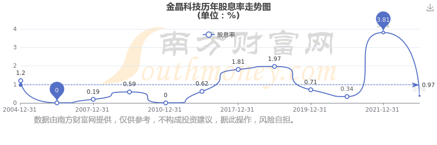 近年金晶科技年度股息率走勢如下圖: