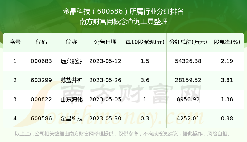 二、金晶科技600586行業(yè)分紅排名