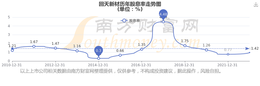 近年回天新材年度股息率走勢如下圖: