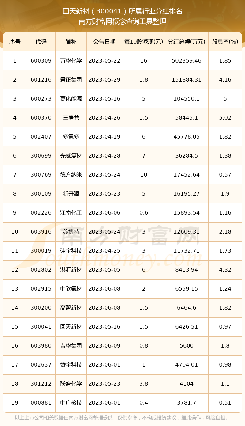 二、回天新材300041行業(yè)分紅排名