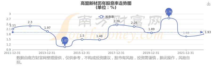 高盟新材最新一次公布的分紅方案:10派1.5元。