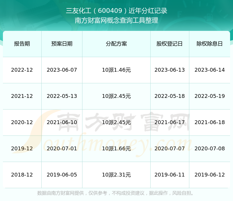 三友化工最新一次公布的分紅方案:10派1.46元。