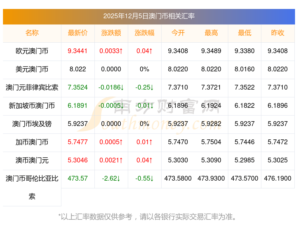 2025年12月5日澳門幣相關(guān)匯率查詢