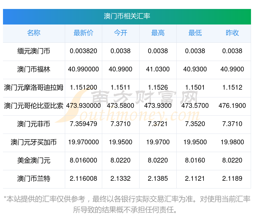 2025年12月5日澳門幣相關(guān)匯率查詢