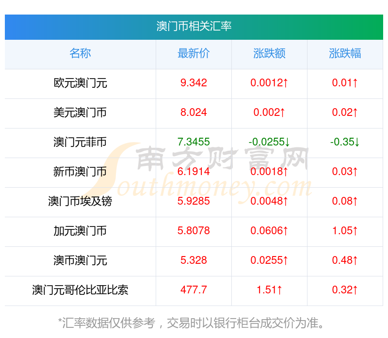 2025年12月6日澳門幣相關(guān)匯率查詢