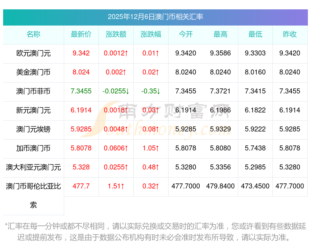 2025年12月6日澳門(mén)幣相關(guān)匯率查詢