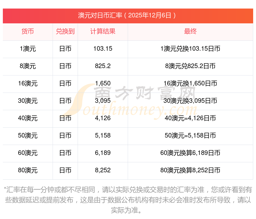 今天匯率查詢:144澳元兌日幣匯率又是多少?2025/12/6