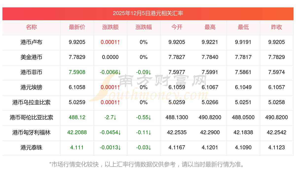 根據(jù)2025年12月5日匯率計算,港元兌換越南盾匯率最新價3389.220000,今開價3388.8900,昨收價3388.7800,最高價3389.6800,最低價3388.2800。