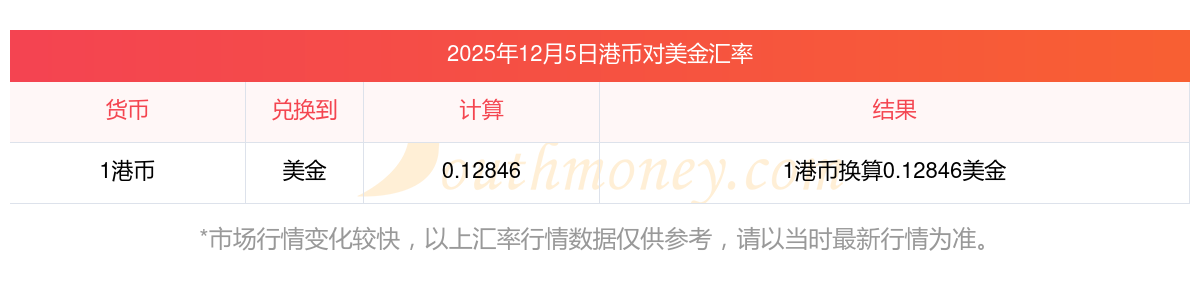2025年12月5日匯率行情:5港幣對美金匯率多少