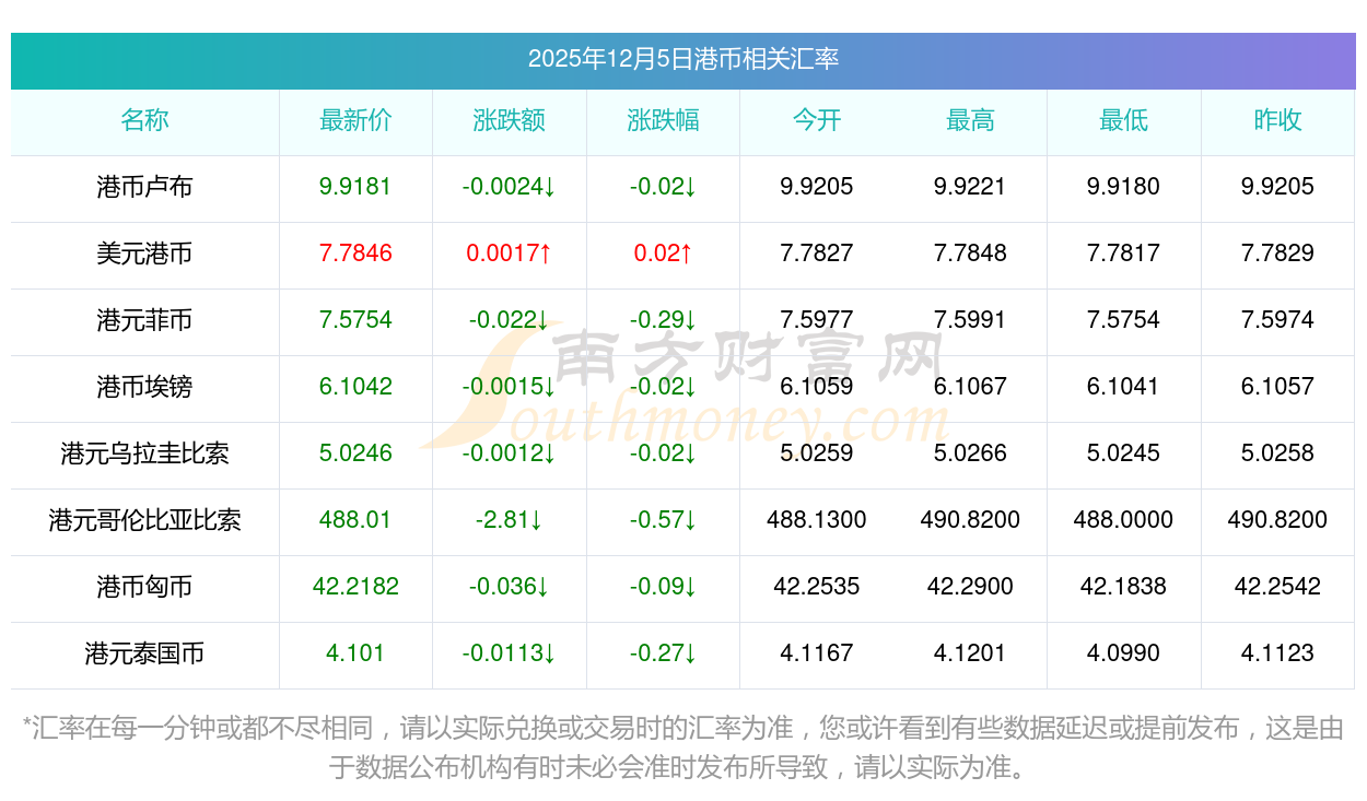 2025年12月5日港幣相關(guān)匯率查詢