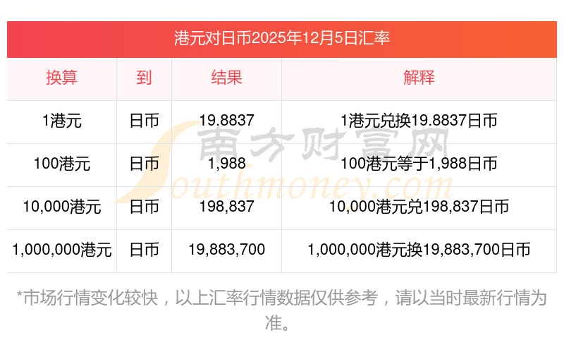 日幣今日匯率實(shí)時(shí)查詢 119港元對(duì)日幣匯率2025-12-5