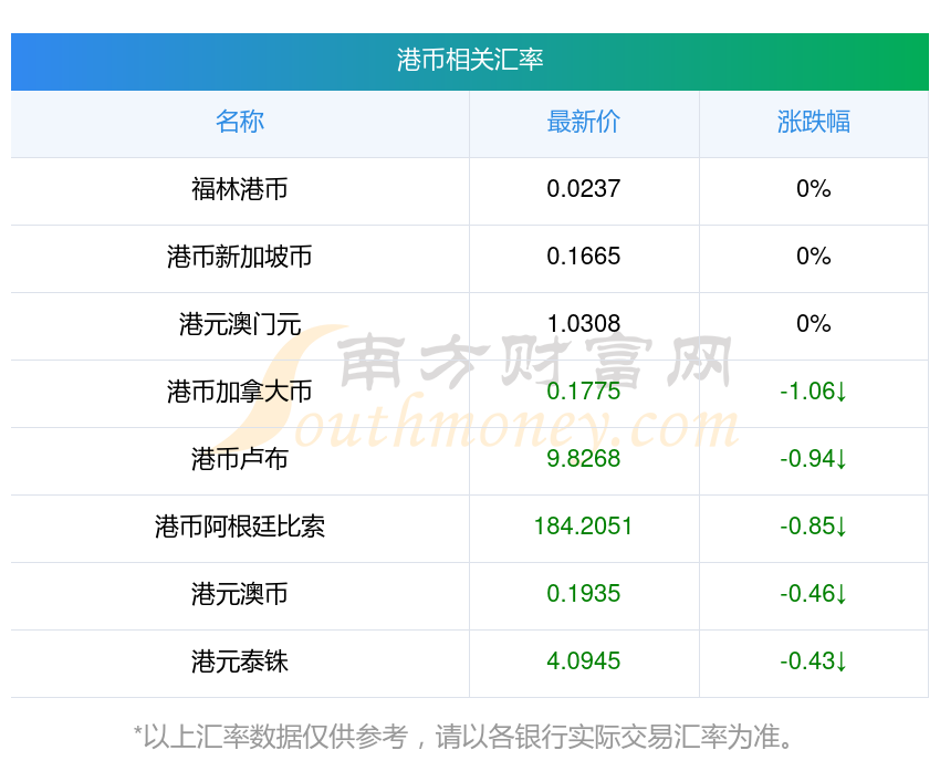 2025年12月6日港幣相關(guān)匯率查詢