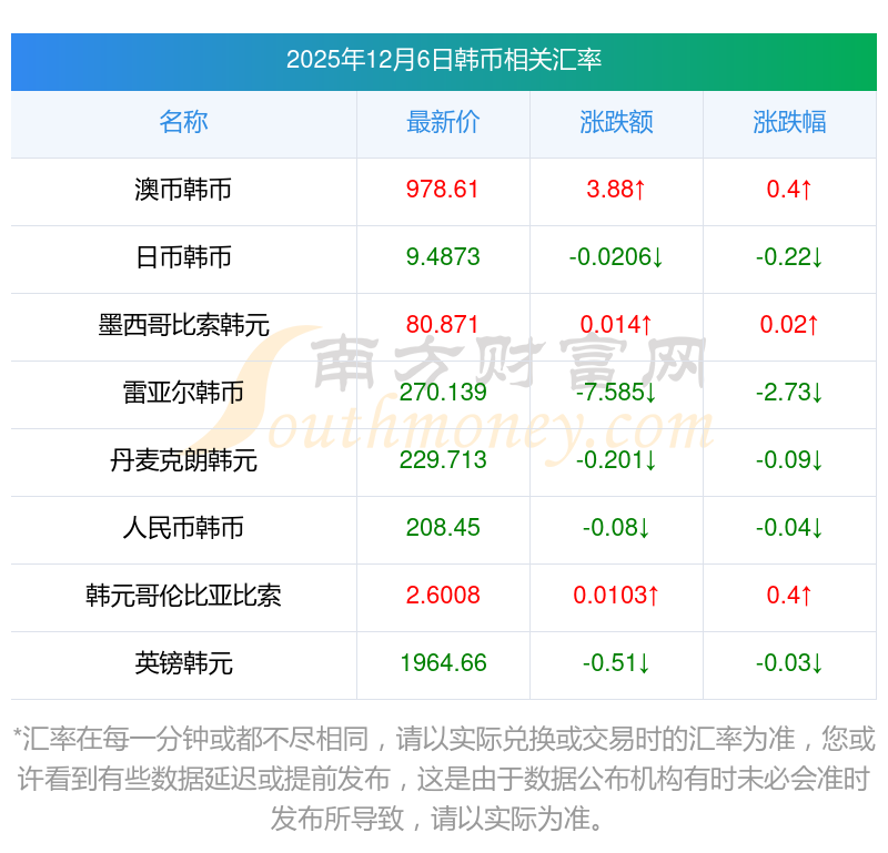 根據(jù)2025年12月6日匯率,韓幣兌換典幣匯率最新0.006380,今開0.0064,昨收0.0064,最高0.0064,最低0.0064。