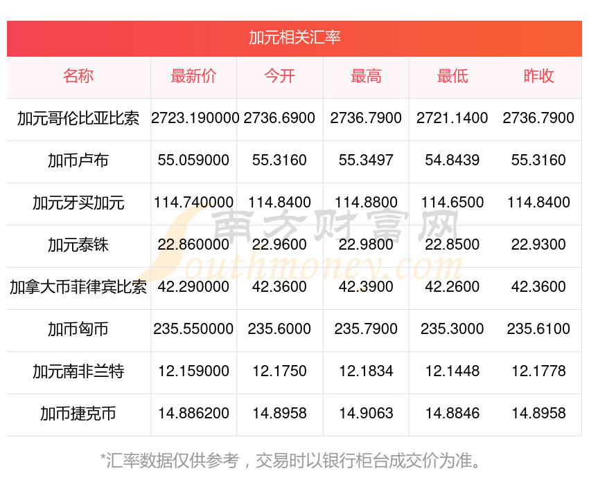 2025年12月5日加元相關(guān)匯率查詢