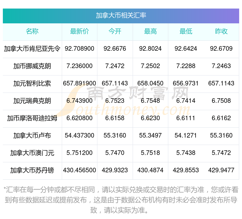 南方財富網為您提供加拿大幣對盧布匯率最新價格詳情。