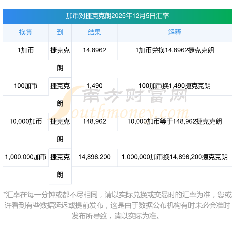 加幣對(duì)捷克克朗匯率調(diào)整每日匯率查詢2025-12-05